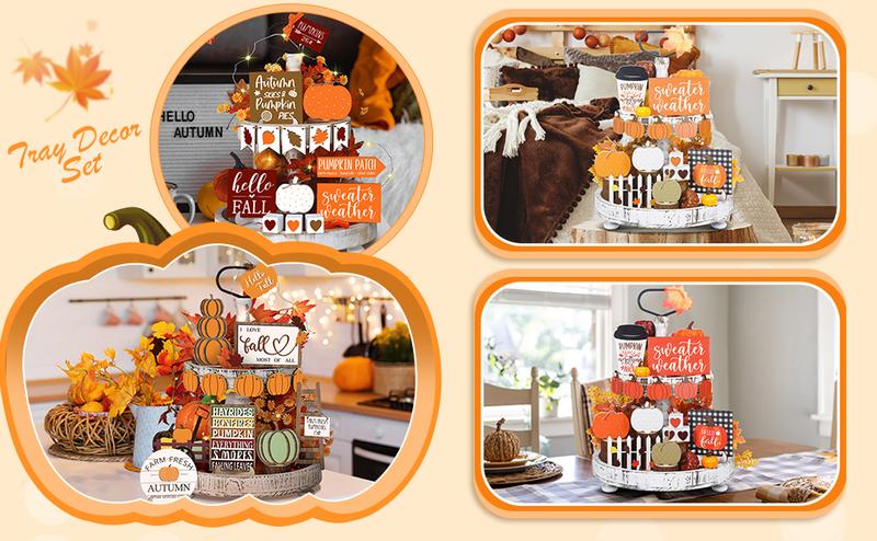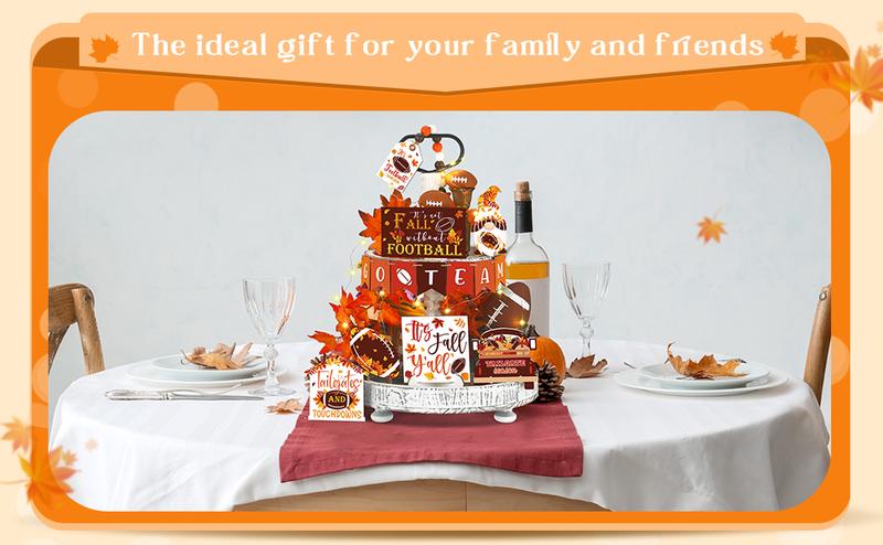 2.Quality Wood Material: the fall decor for tiered trays is made of quality wood, sturdy, smooth, no burrs, safe to use and not easy to fade, exquisite in workmanship, providing you with a long time service
