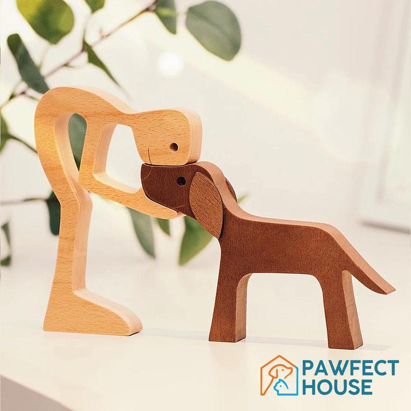 - Bring warmth and character to your space with this beautifully handcrafted wooden puzzle sculpture featuring a man and his loyal dog. Designed with clean, angular lines and a minimalist aesthetic, this piece makes a meaningful gift for pet lovers or a timeless home decor accent.